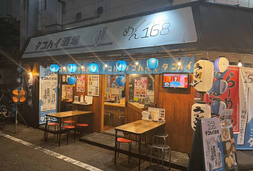 めん居酒屋を開業し、2024年8月にはタコハイ酒場めん168に店名変更